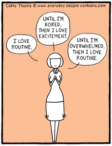 I am working on trying to establish a routine for myself to maintain my level of togetherness (some call it sanity!)