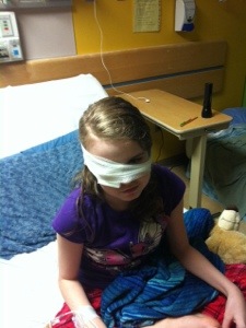 At the end of last blogRyleigh and I were having a very disruptive sleep last night with frequent visits from the nurses to check her vitals and see what her cognitive status was. Then the day consisted of numerous visits from various groups of doctors from Neurology and GI. Ryleigh has been isolated in her room and they have told her she cannot leave it until at least Friday – they are hoping to get results from some of the virus tests to see if a virus caused this palsy. This is a picture of her today. She is a bit more droopy in the eye area.
