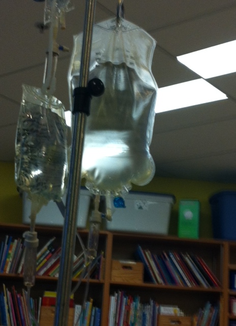 It is now 11:00 pm. We are in a very tiny room – no space for a cot for me. I will be sleeping sitting up – but helping Ryleigh make her way to the bathroom every few hours. She is also starting to feel very nauseous – another long night….good thing I have some experience at this kind of thing. Until next time….