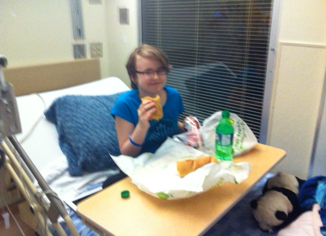“A sub, doritos, and a sprite – this is the best day ever. Okay – it does not take much to make me happy!”  Ryleigh’s enthusiastic quote after I arrived with one of her favourite (not the most nutritious but at least she is eating something)meals.